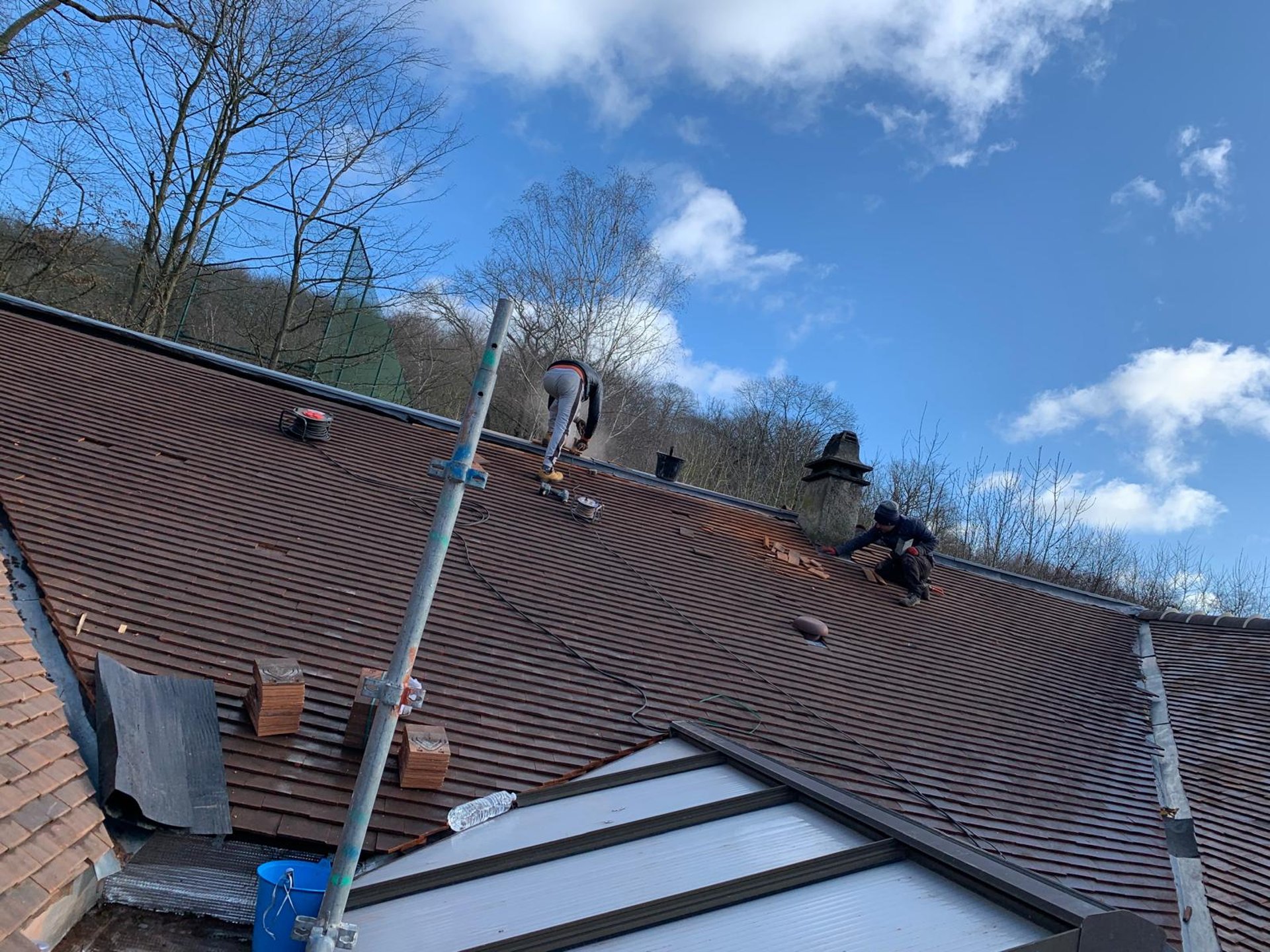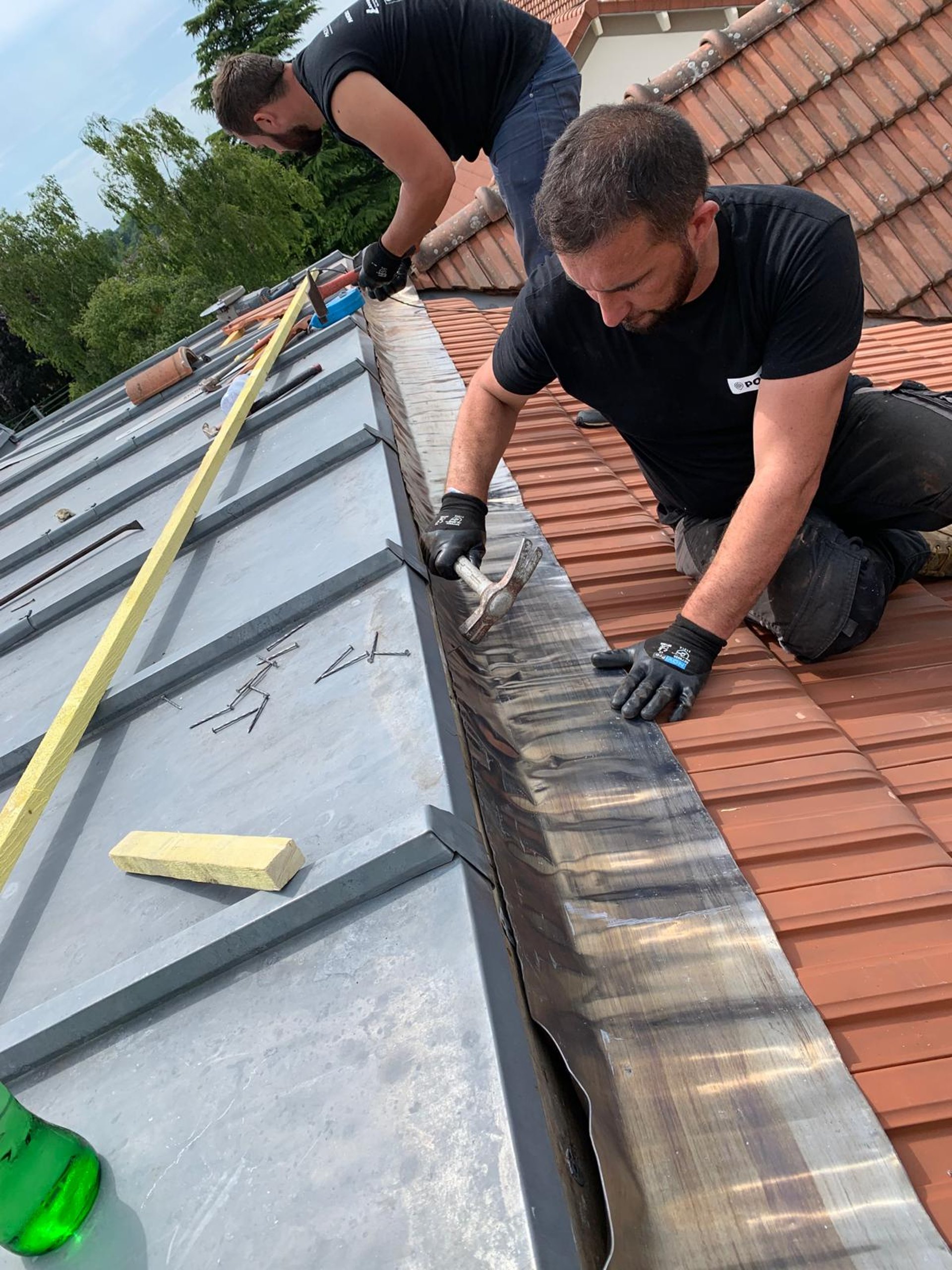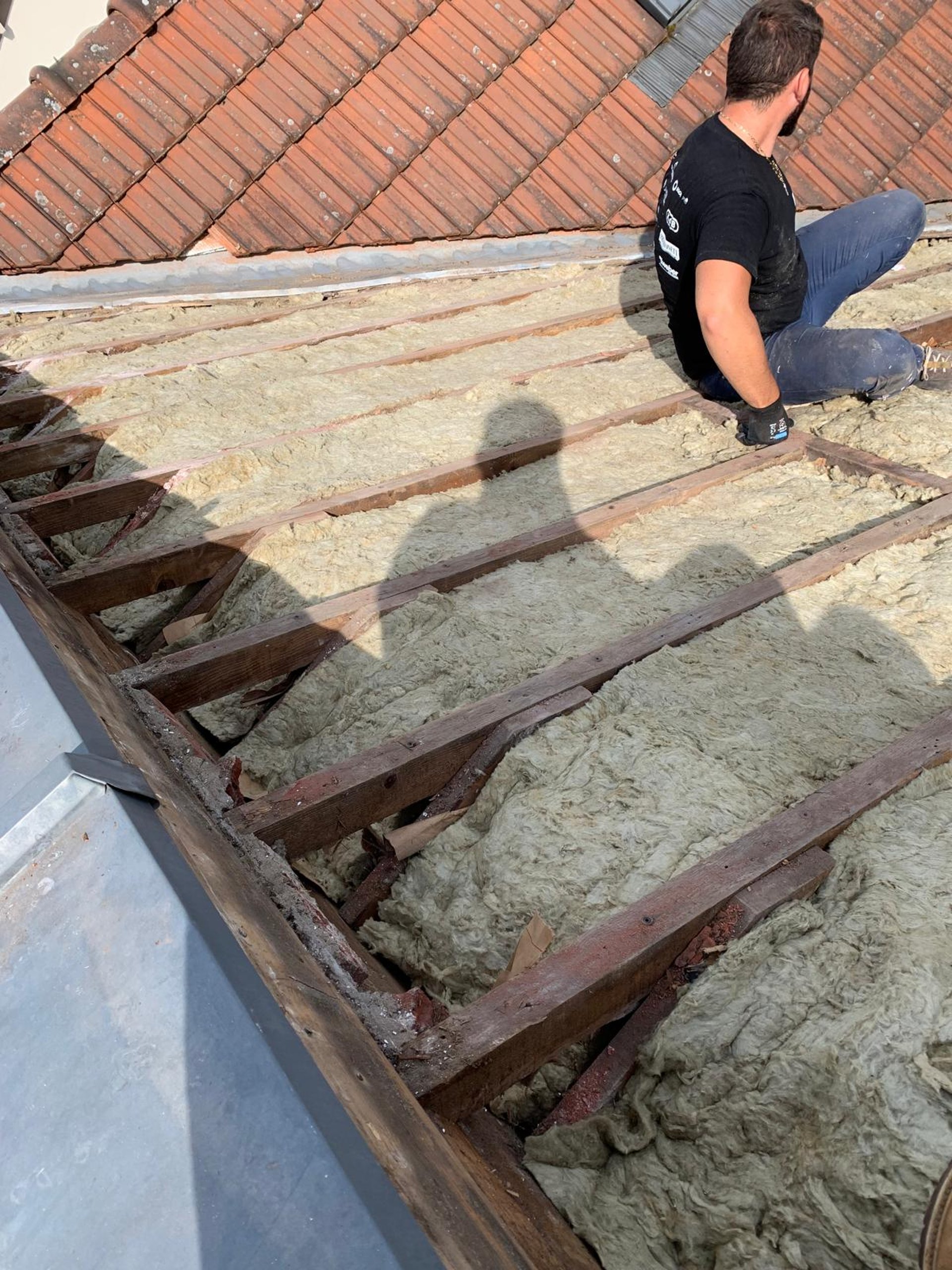 A man on a roof working on a roof